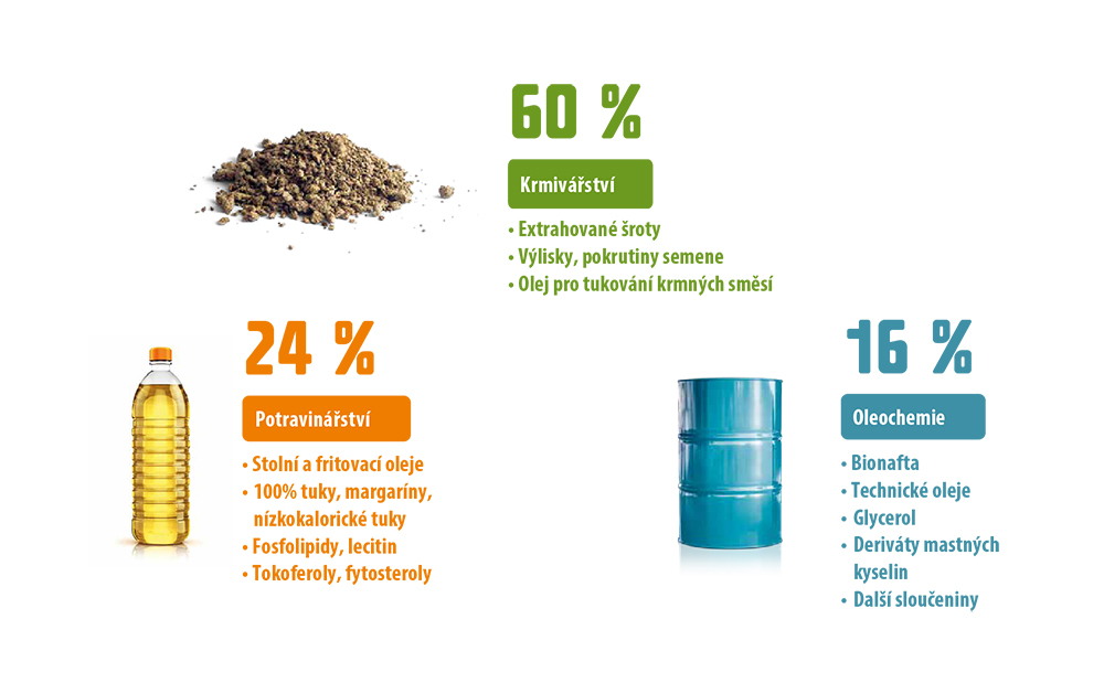 Kromě lidí si na své v souvislosti s řepkou přijdou také hospodářská zvířata. Ta jsou totiž krmena řepkovými šroty. Řepka tak v jejich jídelníčku dokáže dobře nahradit sóju, která je do Česka dovážena přes půl planety.