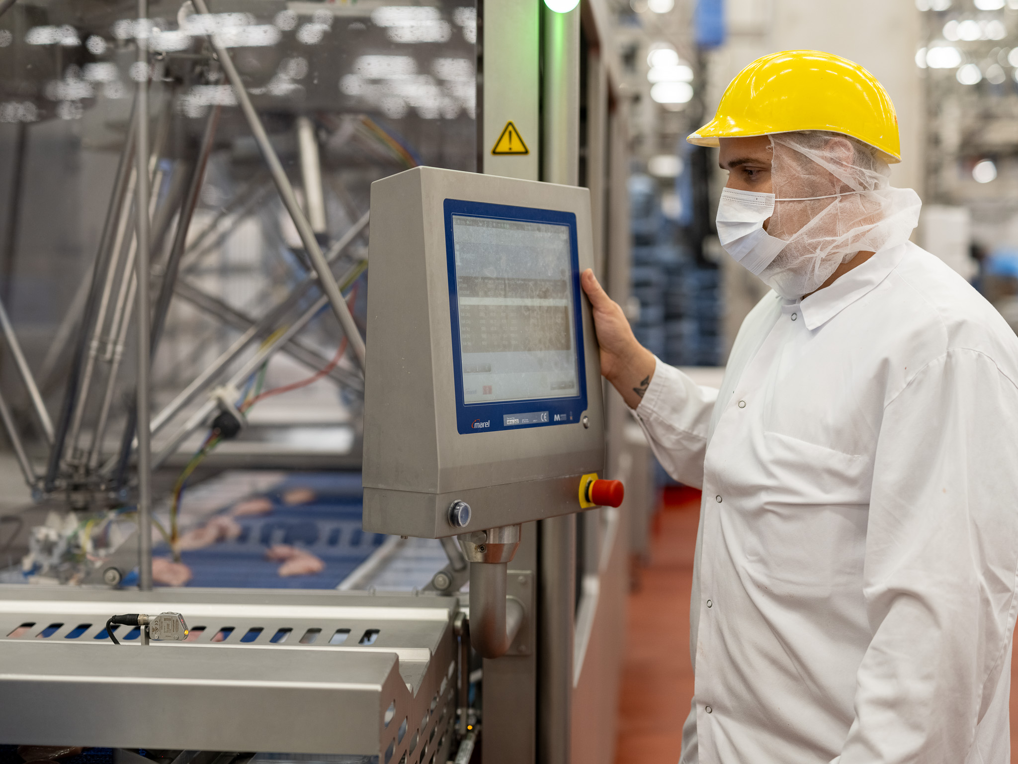 What has emerged is a modern, clean operation where everything is computer controlled. Today's demands are really maxed out, for example, for KFC all pieces must be the same. A machine can do it to the very millimetre. The production line is controlled by very precise scanners, everything works together perfectly. The chicken is processed on the production line within ten minutes.